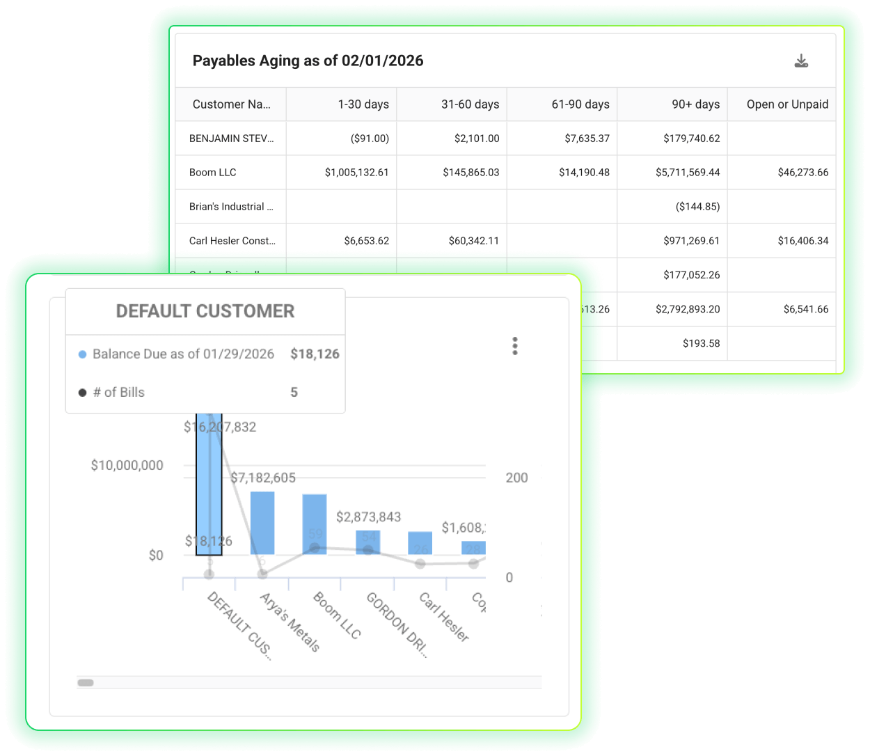 - Real-time visibility into what is owed, what is due, and what is at risk.